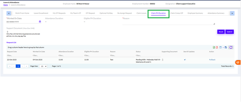 The Claim PH is nothing but a claim public holiday duration. It is more likely to a comp off. If the employee is working on any public holiday then he is eligible to claim Ph duration as shown in the image below.