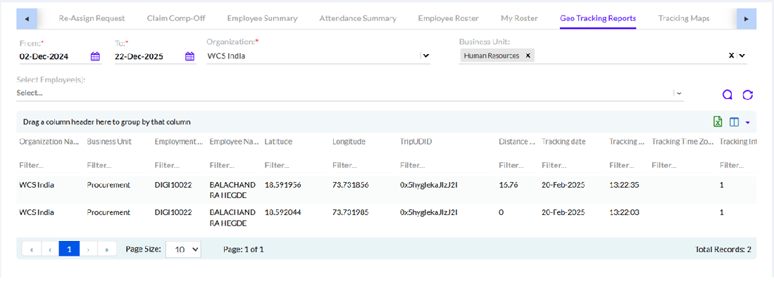 Once the geo-tracking setup is done by the HR, the Manager of the employee and the HR can view the geo-tracking reports when they want to view.