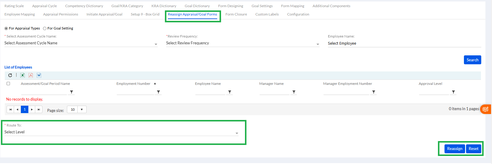 Select Employee and then Select Route To (Select Level) and click Reassign.