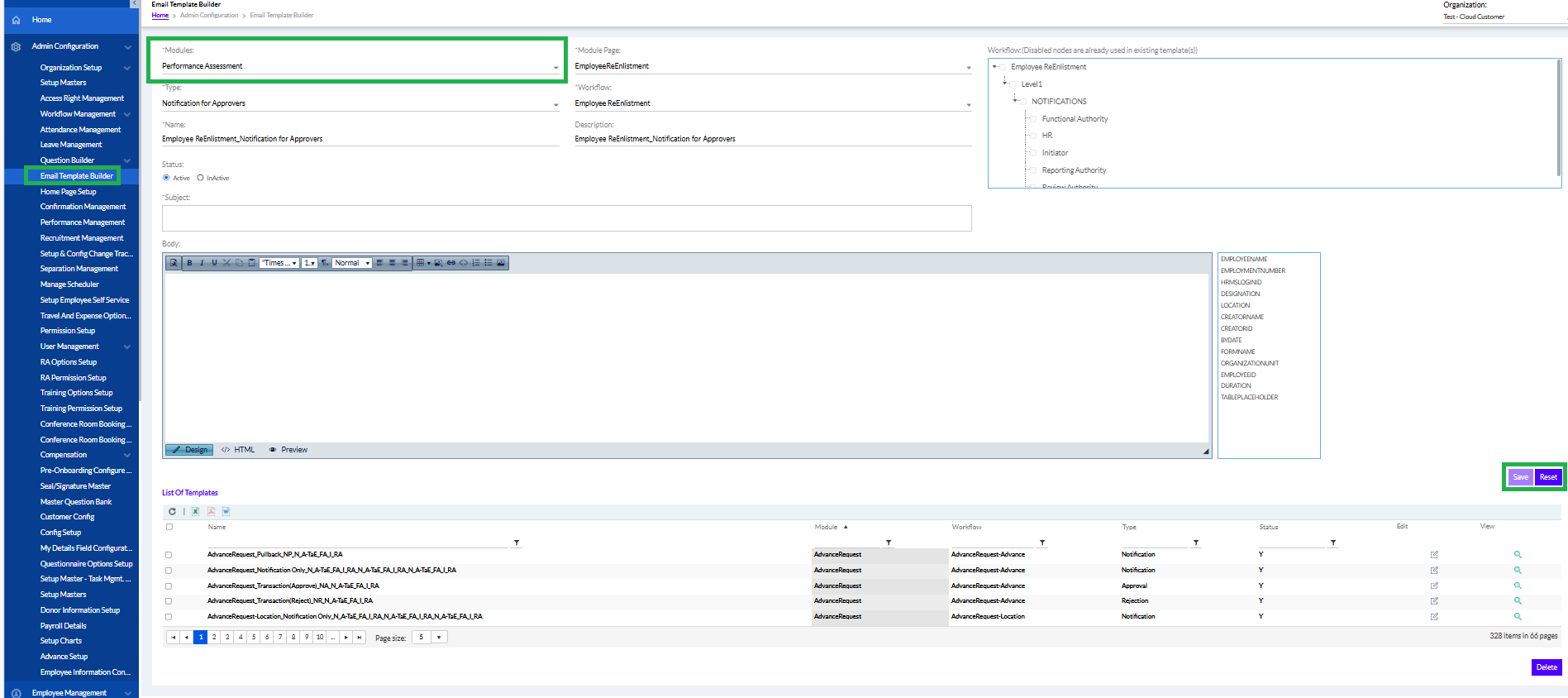 This section is used by the admin to set up the email templates for various modules. But here we will check how to set up the email template for performance assessment.