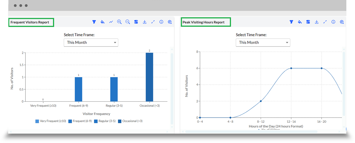 Frequent Visitors Report classifies visitors into four categories: Occasional, Regular, Frequent, and Very Frequent. This allows for the identification of recurrent visitors and patterns of behaviour.